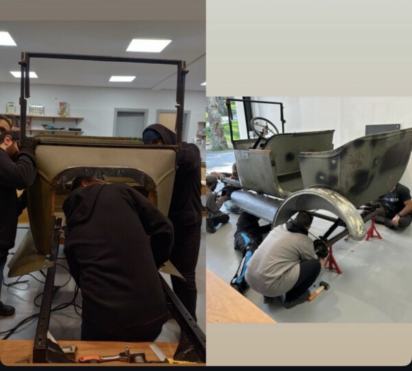 Porém, o que mais me impressionou no CARDE foi a Escola de Restauro, cuja primeira turma restaurou um Ford Modelo T, 1923 e um Mark 1. Dela, em 2022, participava Bruno Costa de Lima, que hoje é um dos guias responsáveis pela apresentação da escola, que já formou 17 profissionais. Todos sob a tutela do responsável pela escola, o restaurador Mauro Bergamini.