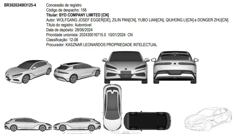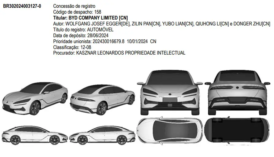 Independente do que aconteça, a BYD não para de trazer mais modelos pro nosso mercado e intensifica os preparativos para lançar sua marca de luxo, Denza, no Brasil. Os modelos Denza Z9 e Z9 GT, um sedã e uma perua esportiva de luxo, respectivamente, tiveram suas patentes registradas no Instituto Nacional de Propriedade Industrial (INPI). A expectativa é que a família Z9 comece a ser comercializada no país em 2025, trazendo opções de motorização híbrida plug-in (PHEV) e elétrica (BEV).