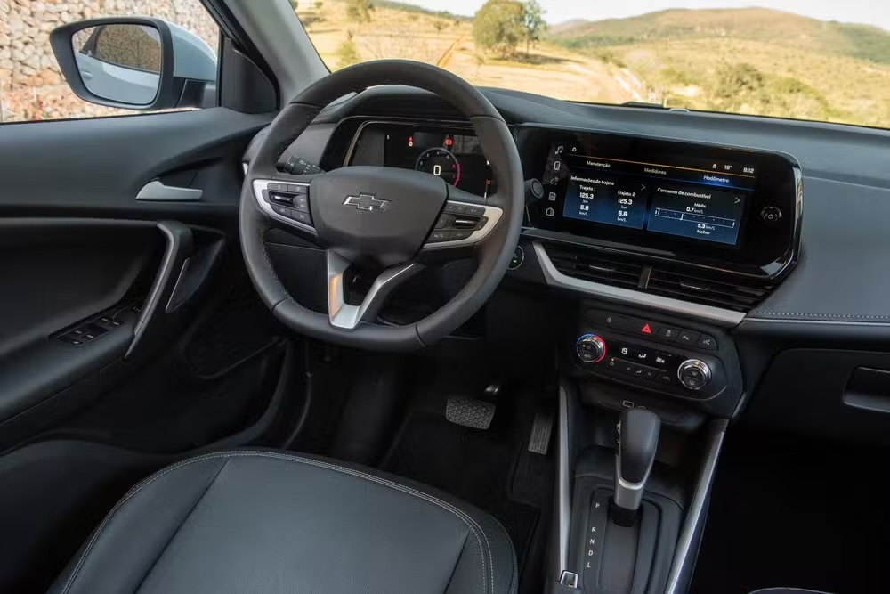 No caso do Tracker, a edição especial toma como base a versão Premier, topo de linha da gama. O modelo recebe a nova cor Azul Noronha, aplicada exclusivamente nesta série, com acabamento externo escurecido em rodas, rack de teto e logotipos. Internamente, o visual segue o mesmo padrão, com predominância da cor preta e a presença da assinatura “100 Anos” em pontos estratégicos da carroceria, como a coluna B e a tampa traseira.