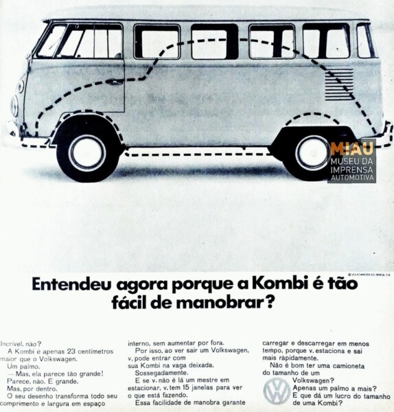 Em contrapartida, na Kombi, motorista e acompanhante ficam sentados à frente do eixo dianteiro e, dessa forma, é possível criar duas fileiras de bancos atrás, mais ou menos como se fosse o interior do Fusca. Com isso, a Velha Senhora disponibiliza muito mais espaço interno, pela forma de sua carroceria e disposição dos bancos sobre os eixos. Bem interessante!