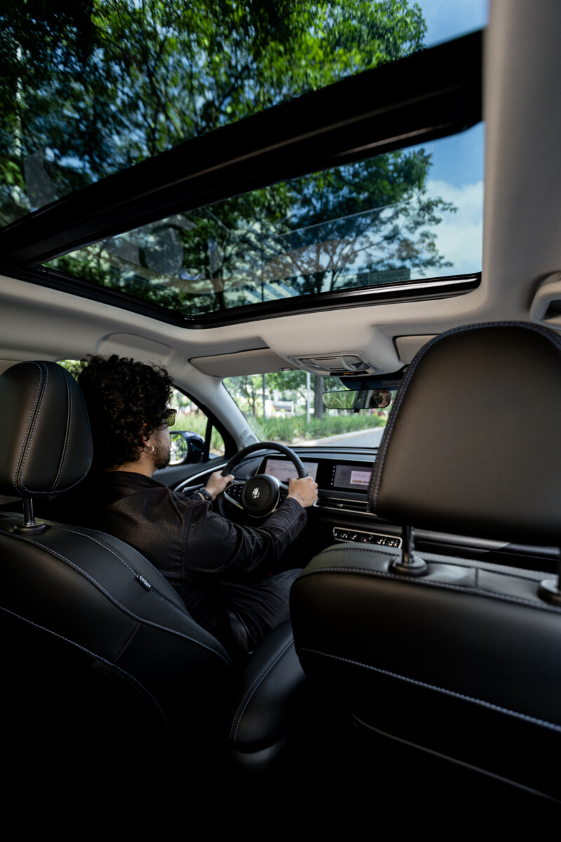 A carroceria na cor Azul Copacabana é complementada por um teto e colunas dianteiras pintados em preto, enquanto o interior apresenta revestimento em couro ecológico preto. Este modelo também inclui um teto solar panorâmico, um recurso anteriormente disponível apenas na versão GT a topo de linha.